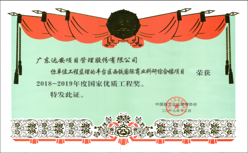 國家優(yōu)質(zhì)工程獎(jiǎng)-豐臺區(qū)西鐵國際商業(yè)科研綜合樓項(xiàng)目